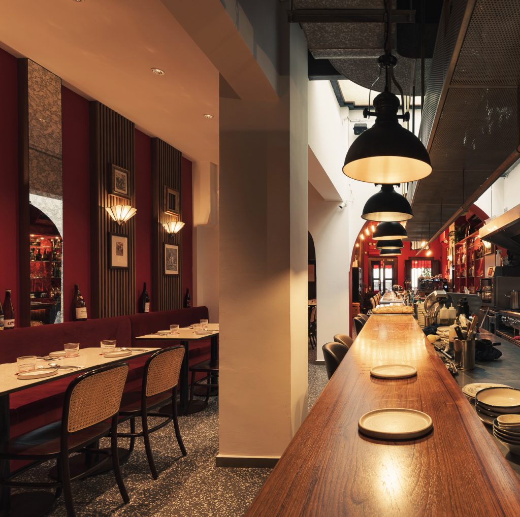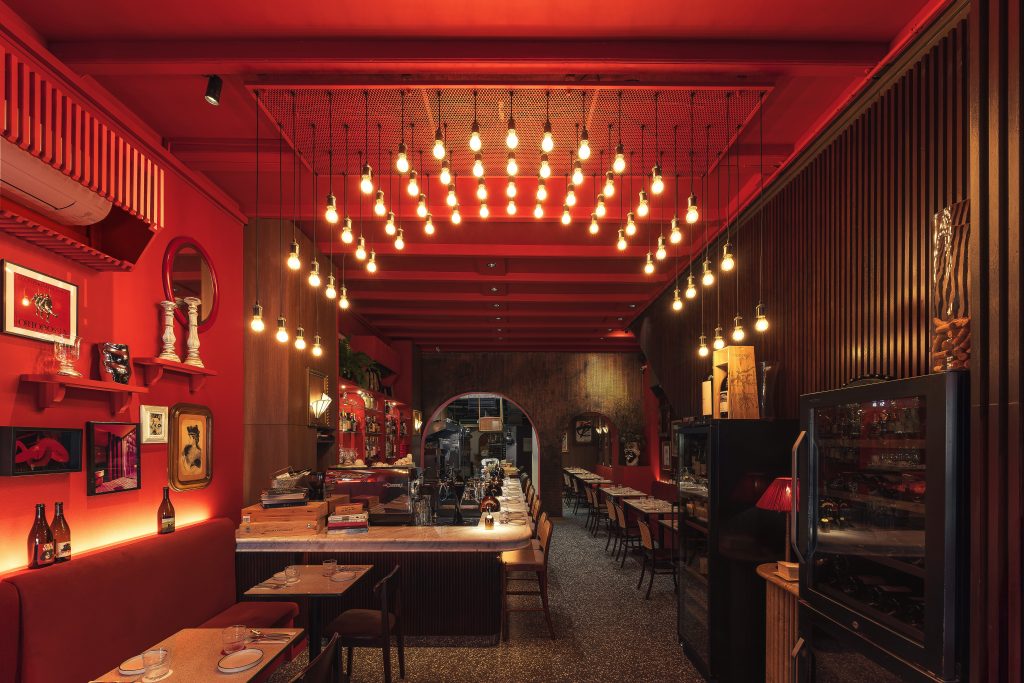 The interiors captures a sense of sexy and glamorous dining experience with unique retro-inspired ambiance and the layout of the restaurant offers four distinctive dining experiences – a full functioned sexy bar, lively dining space with banquette seating, open kitchen where can be pleased by an unobstructed view of chefs in action and lastly, cozy nook for romantic and memorable moments – it’s all equally playful.